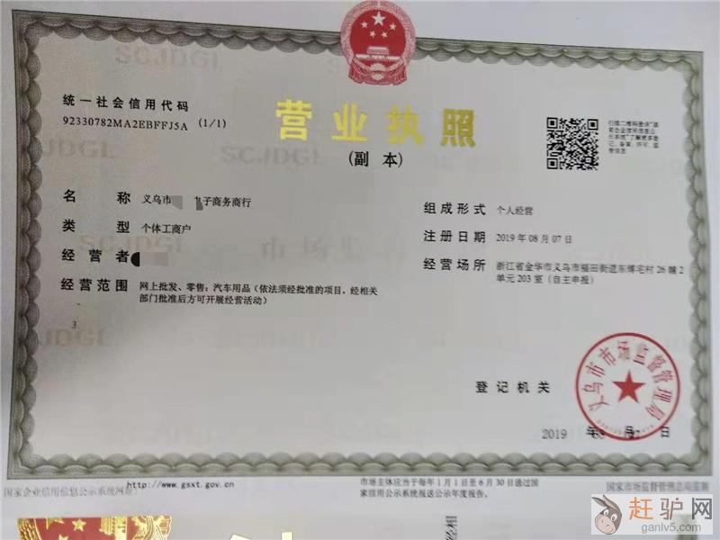 1、注册义乌个体工商户的营业执照:需要个人身F证正反面扫描件