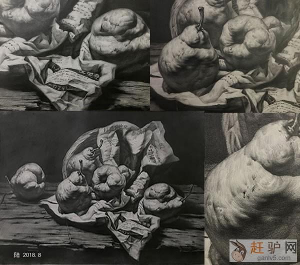 静物阶段则是训练我们的观察能力,绘画一些我们身边常见的物体,练习不同质感,不同纹理的物体,能够达到见到一个东西就可以基本上了解其结构,将此物体画下来的能力g a n l v 5 c o m。