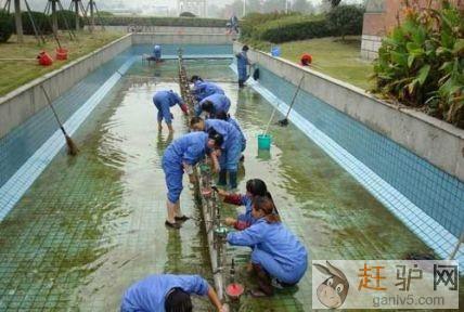 5、第二天用吸污机吸走池底的沉淀物,游泳池就会变得干净了g a n l v 5 c o m。